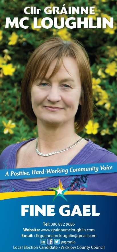 A leaflet and flyer from Gráinne McLoughlin who is running for Fine Gael in Greystones for a seat on Wicklow County Council.