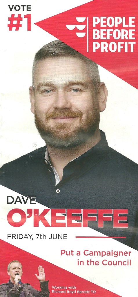 A leaflet from Dave O’Keefe who is running for People Before Profit in Killiney Shankill in the 2024 Local Elections