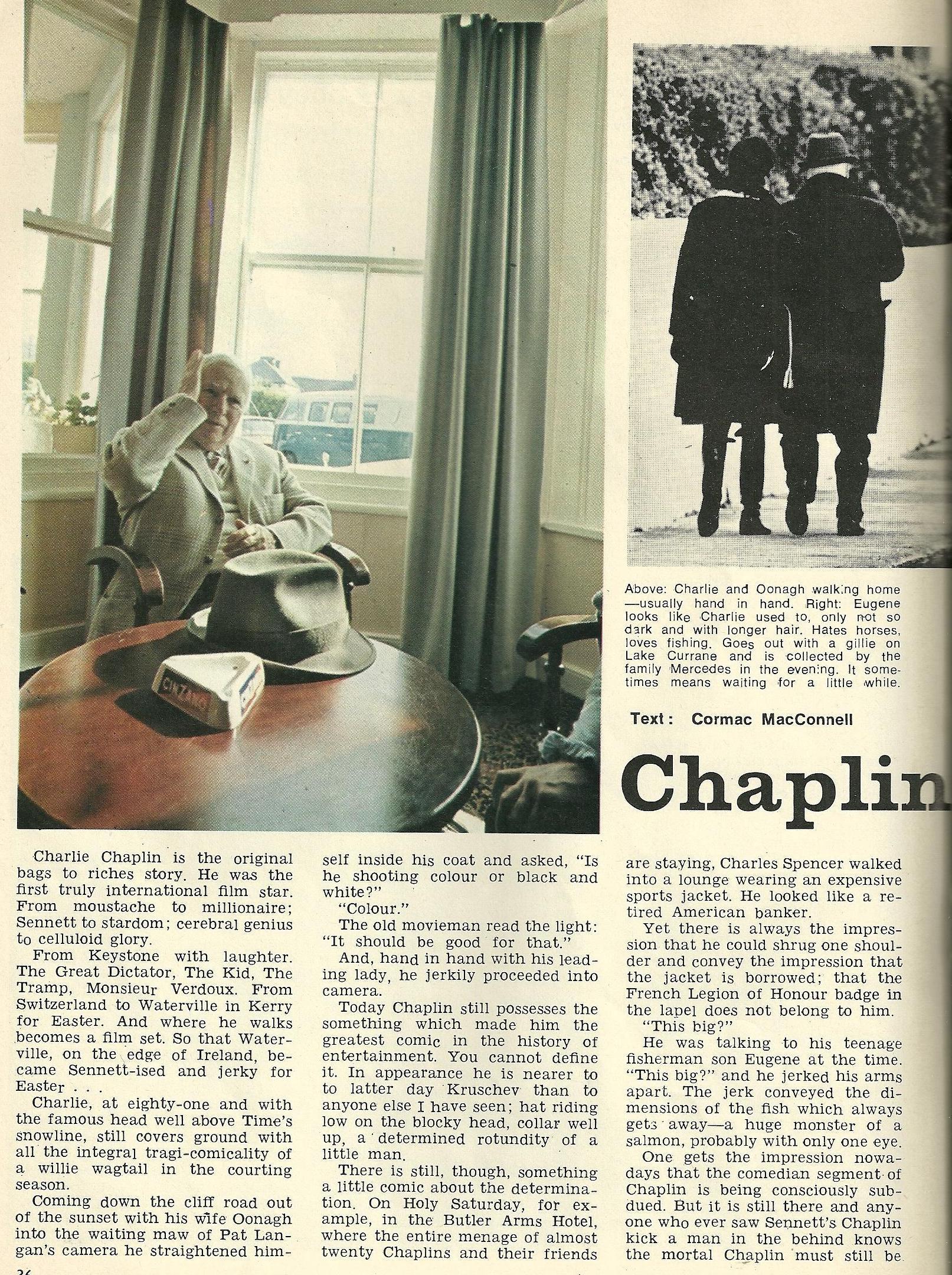 1971 article about Charlie Chaplin and his family holidaying in Waterville, Co Kerry June 20, 2013
