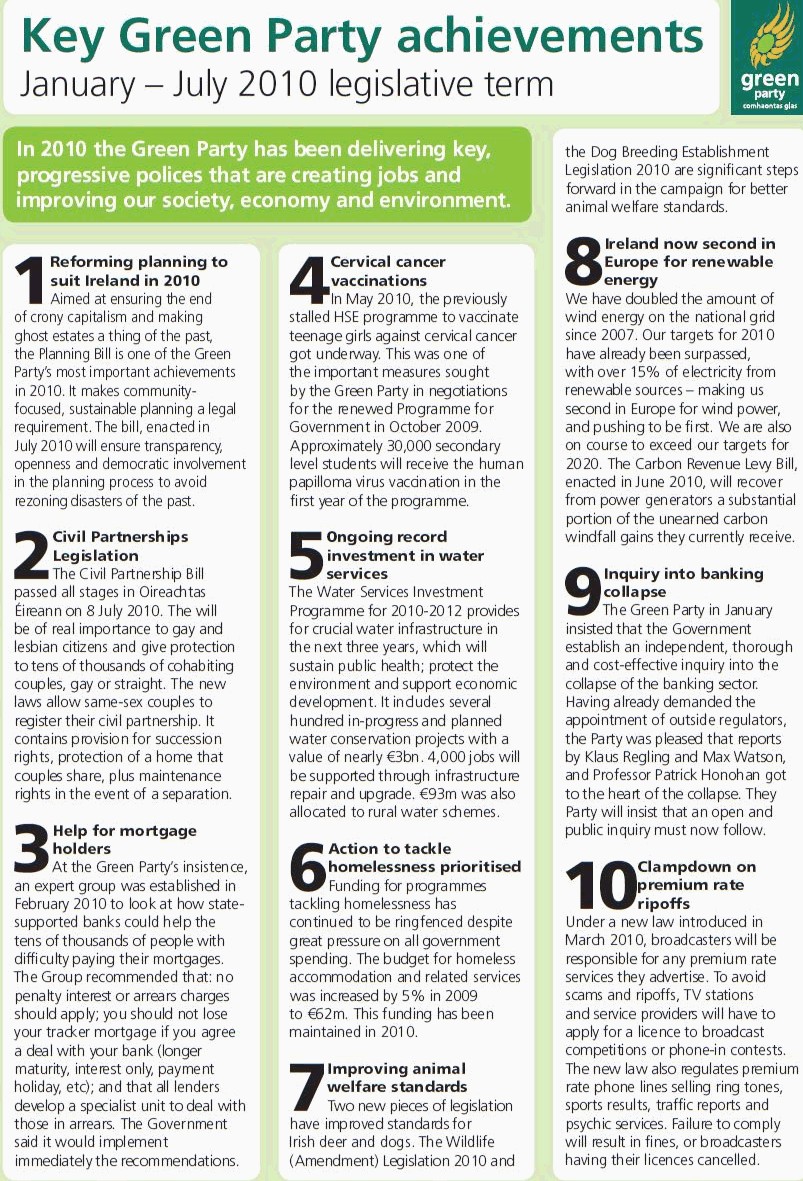 A list of ten ‘Key Green Party Achievements’ from the ‘January to July 2010 Legislative Period’