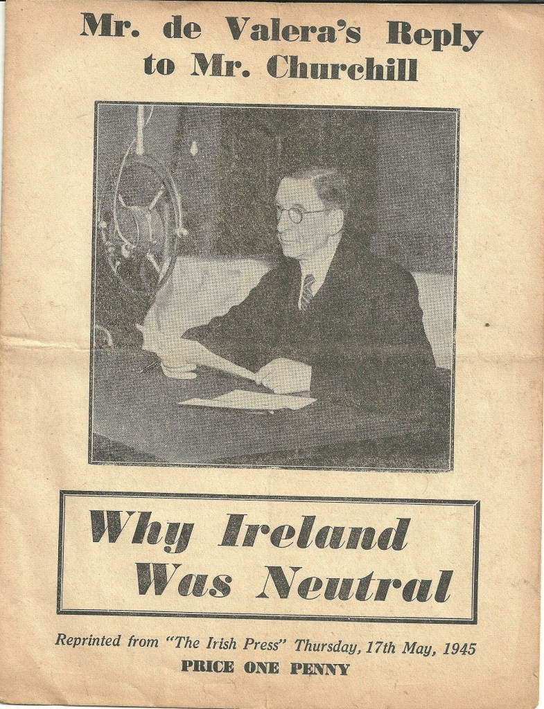 “Mr. de Valera’s Reply to Mr. Churchill” Pamphlet of Devs address to the Nation 16th May 1945, Produced by The Irish Press. Scanned and uploaded in pdf format.