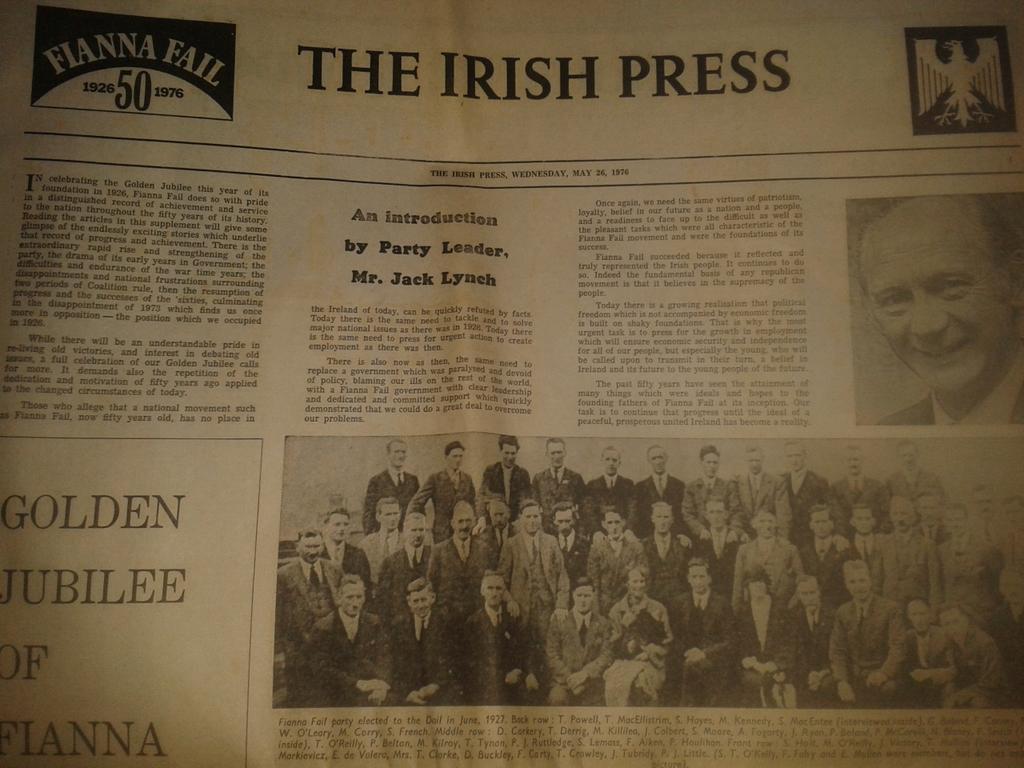 From May 26th 1976, A supplement in The Irish Press to mark 50 years of Fianna Fáil.It’s uploaded in pdf format here