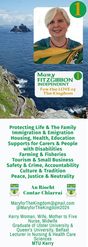Leaflet from Mary Fitzgibbon who is running as an Independent in Kerry in the 2024 General Election