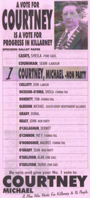 Michael Courtney from the 1999 Local Elections in Killarney where he was elected to the Town Council.