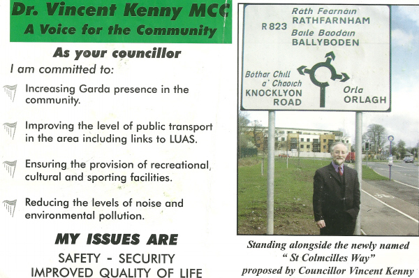 From the 1991 Local Elections a Leaflet from Vincent Kenny who was running as an Independent in Rathfarnham. He polled 760 votes and missed out on a seat.