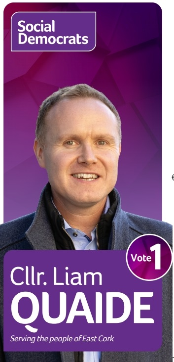 A Leaflet from Liam Quaide who is running for The Social Democrats in Cork East in the 2024 General Election