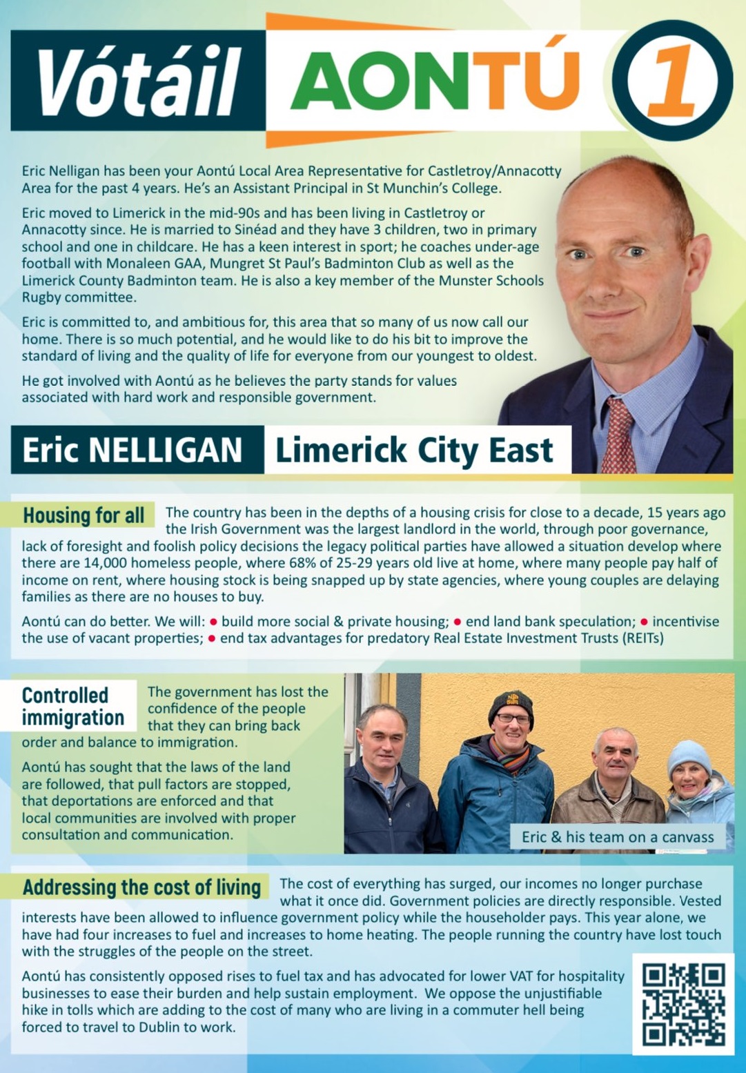 A leaflet from Eric Nelligan who is running for Aontú in Limerick City East in the 2024 Local Elections