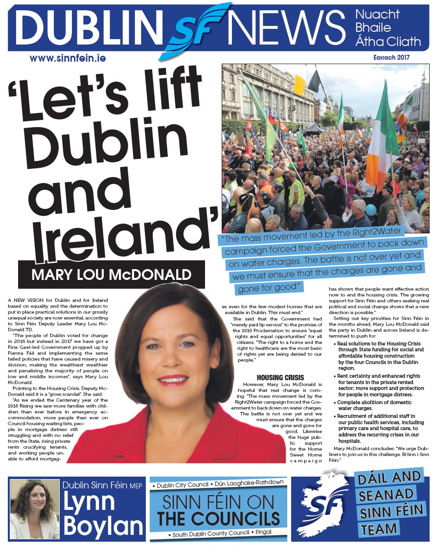 Sinn Fein Dublin News, Earrach 2017 edition. It’s an 8 page newspaper, so it’s uploaded in pdf format