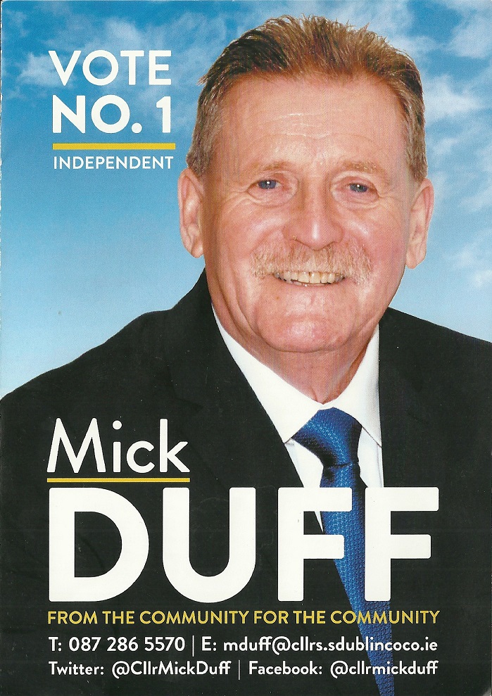 A leaflet from Mick Duff who is running as an Independent in Tallaght Central in the 2024 Local Elections
