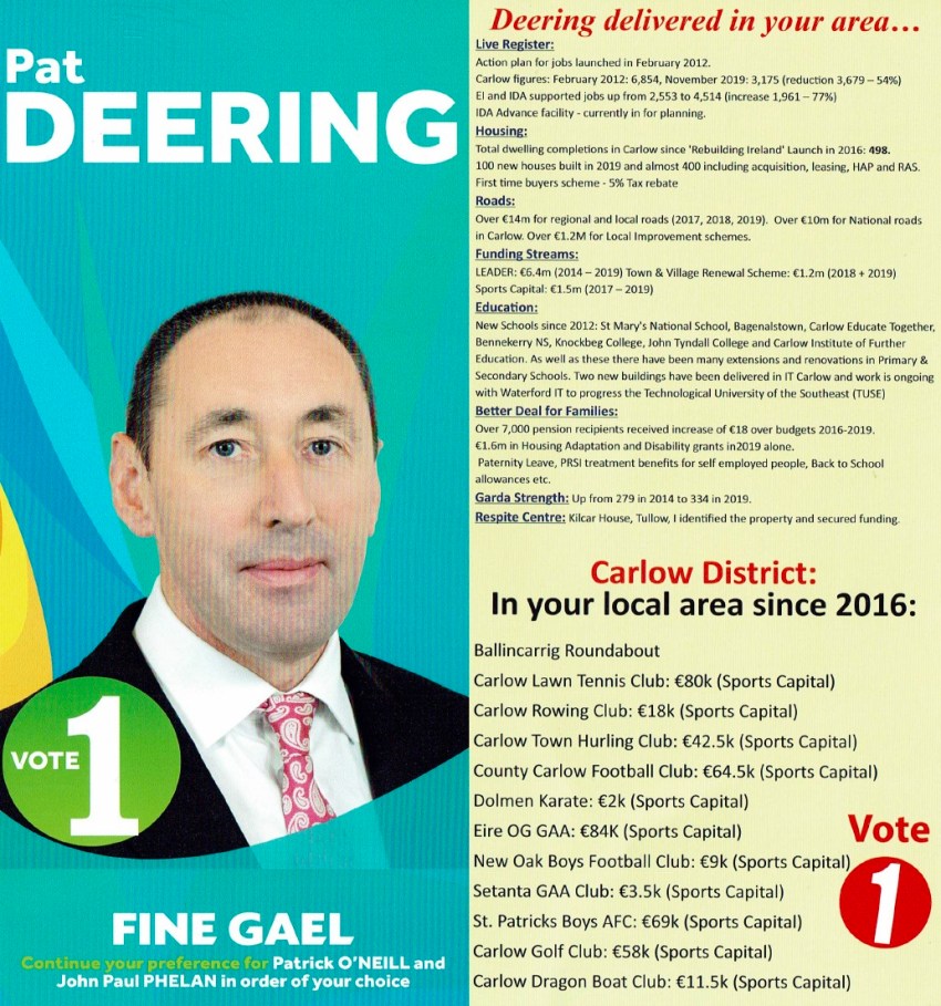 Leaflet from Pat Deering – Fine Gael – Carlow -Kilkenny #GE2020 January 26, 2020