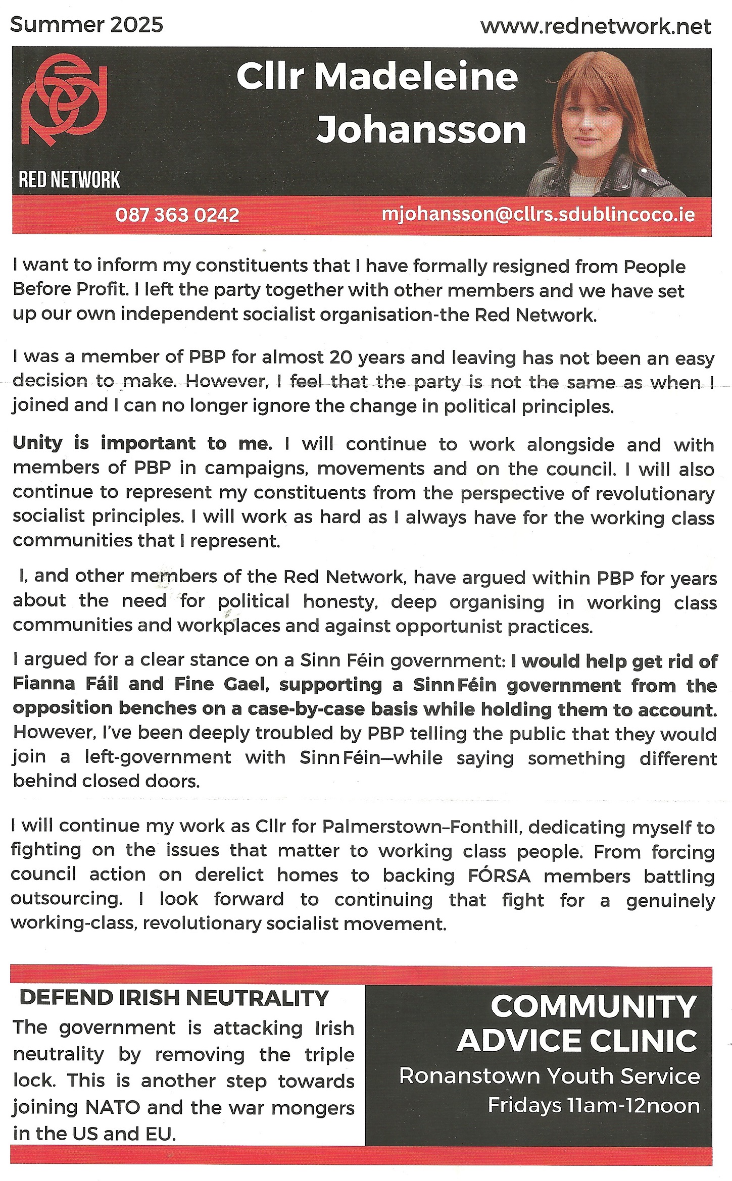 “Connolly for President” a leaflet from Pa Daly the Sinn Féin TD for Kerry from the 2025 Presidential Election.