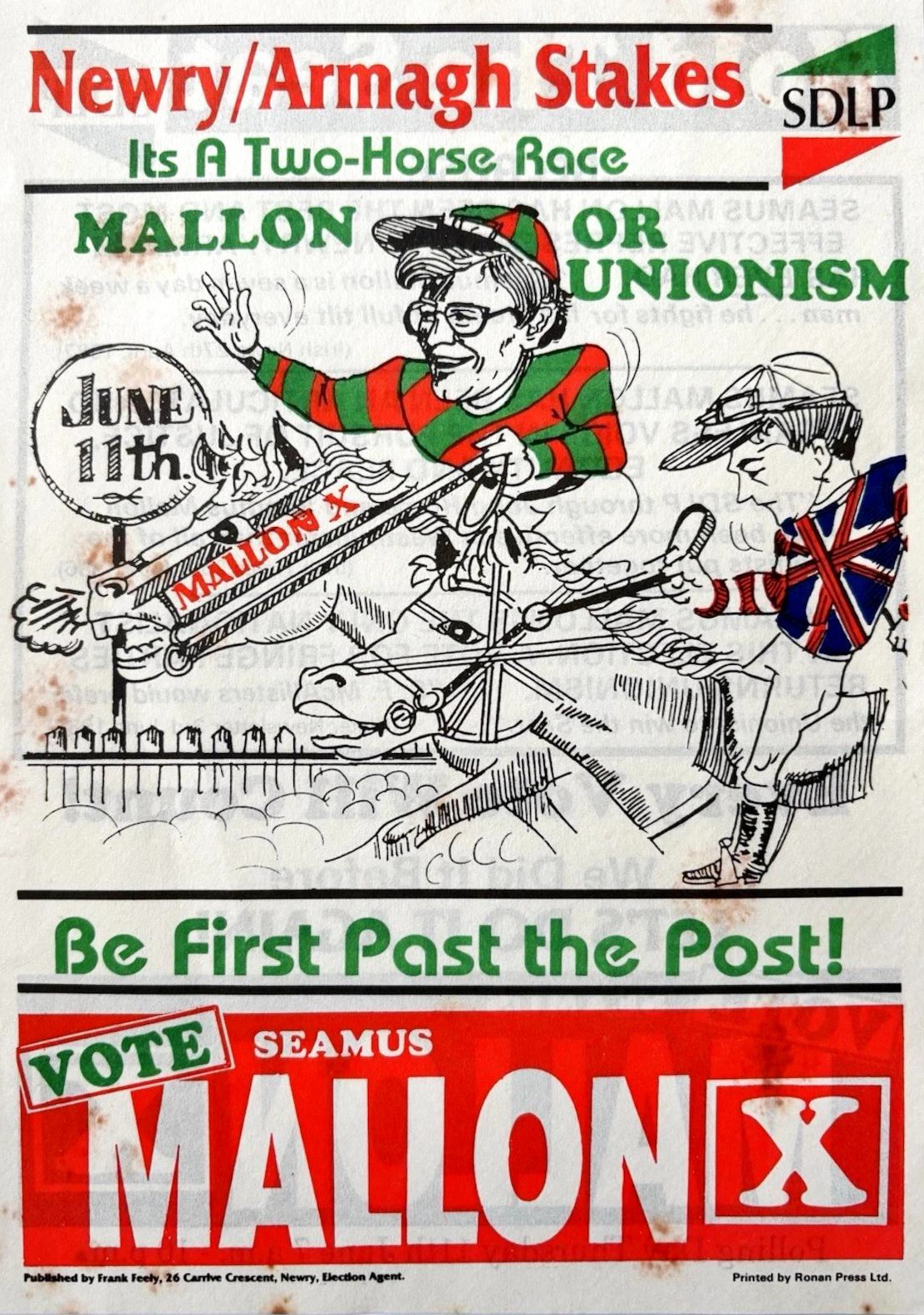 From the 1987 UK Election a leaflet from Seamus Mallon of the SDLP running in Newry and Armagh. He polled 25,137 votes to win the seat with a majority of 5,325 votes.