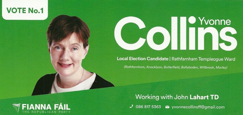 A Leaflet from Yvonne Collins who is running for Fianna Fáil in Rathfarnham Templeogue for a seat on South Dublin County Council