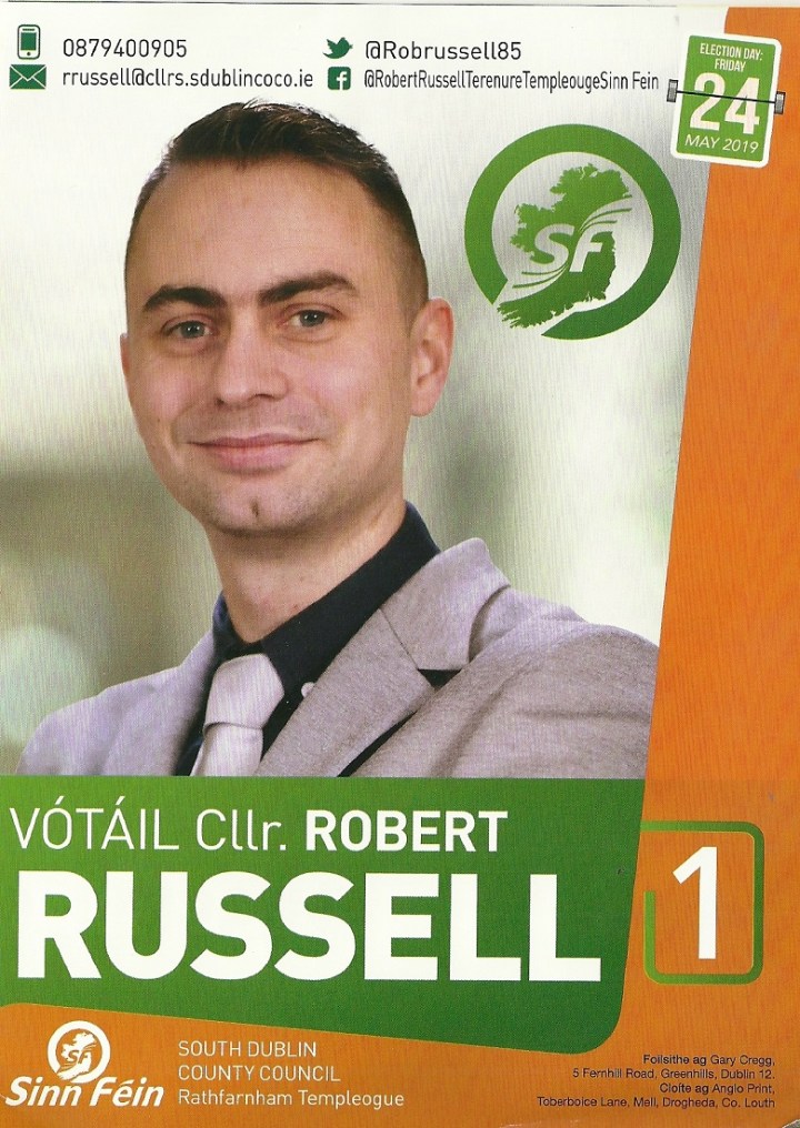 Leaflet from Robert Russell – Sinn Féin -Rathfarnham Templeogue #LE19 May 1, 2019
