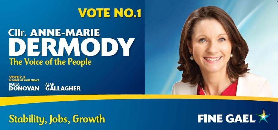 A Canvass Card from Fine Gael Councillor Anne-Marie Dermody who is running in Rathfarnham for a seat on South Dublin County Council.