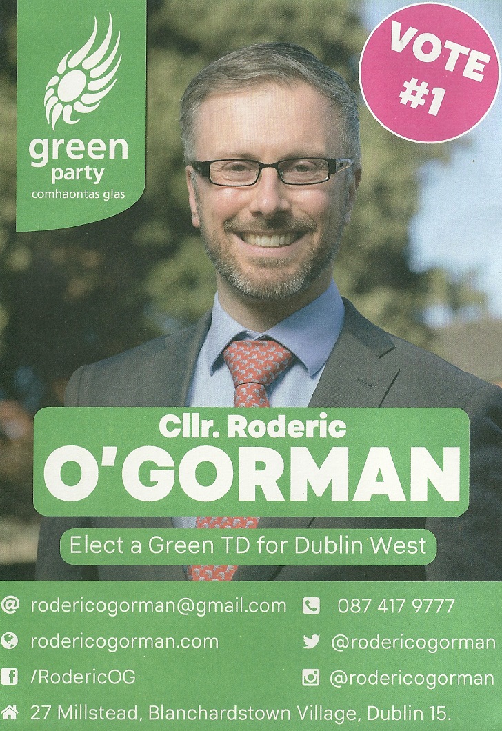 From the 2011 Dublin West By Election a leaflet from Green Party candidate Roderic O’Gorman.