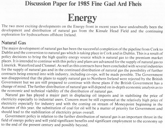 Discussion paper on Energy from the 1985 Fine Gael Ard Fheis April 6, 2010