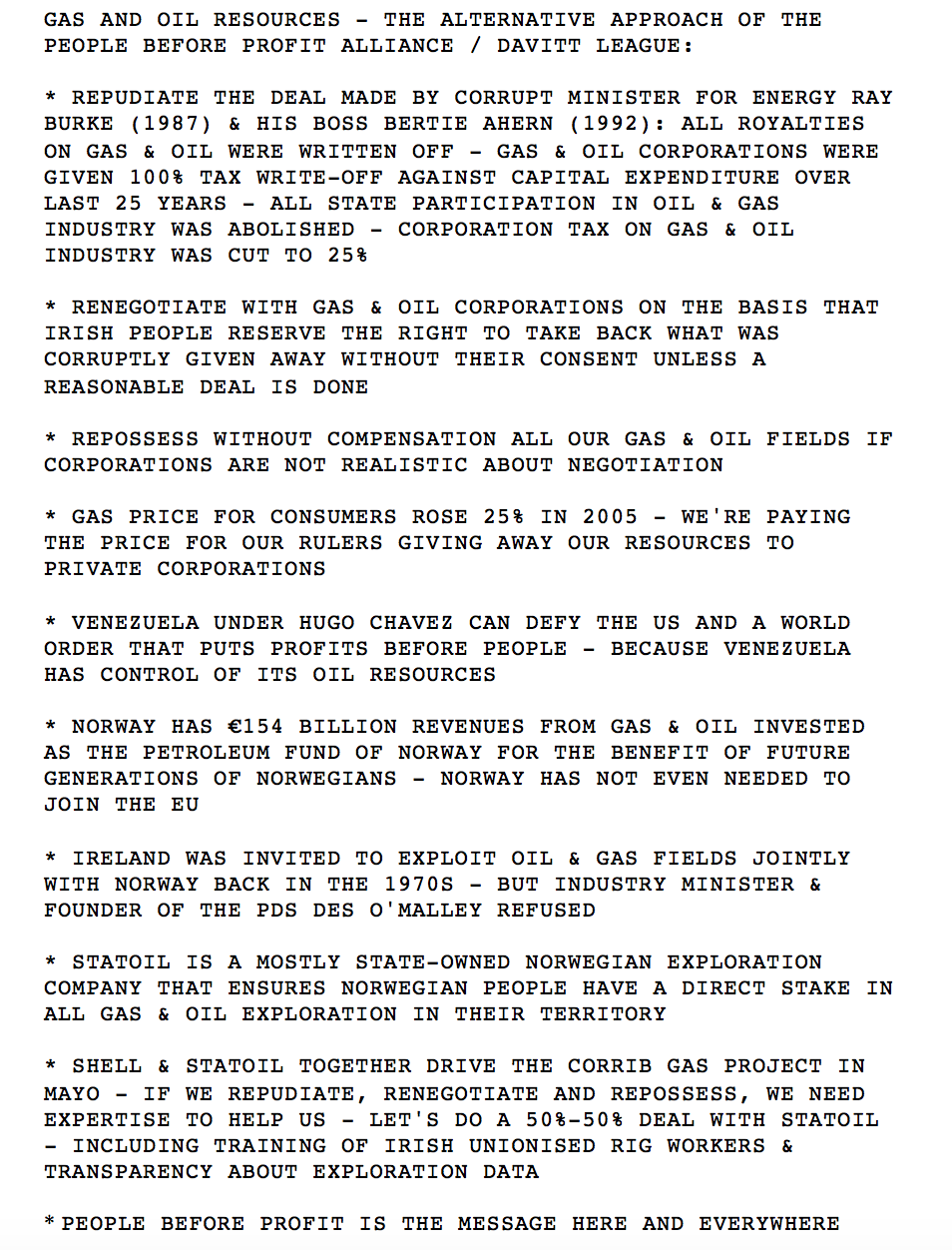 “Gas and Oil Resources” 2005 leaflet from People Before Profit Alliance/Davitt League December 22, 2015