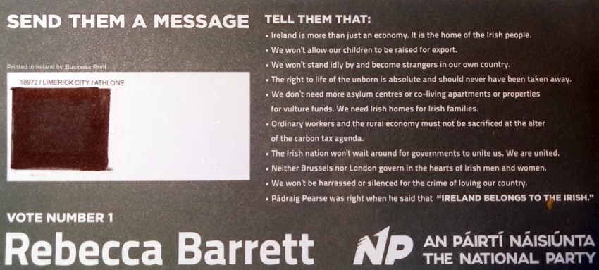 A Leaflet from Rebecca Barrett running for The National Party in Limerick City in the 2020 General Election.