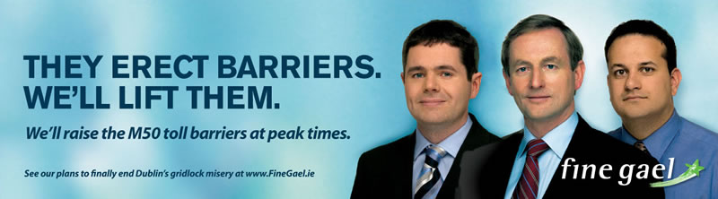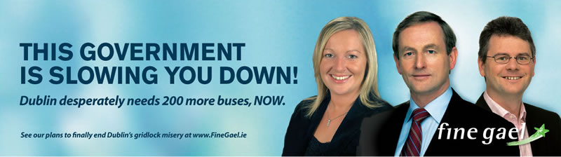 From 2007 , ads from Fine Gael about their “plans to finally end Dublin’s gridlock misery” March 11, 2013