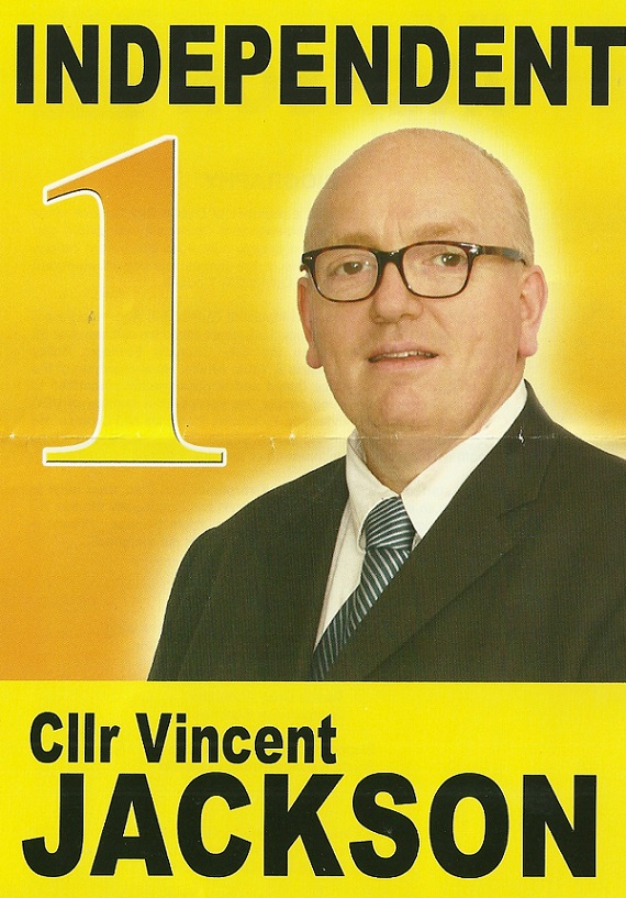 A leaflet from Independent candidate and former Lord Mayor, Vincent Jackson who is running in Ballyfermot Drimnagh for a seat on Dublin City Council. He was formerly known as Vincent Ballyfermot Jackson.