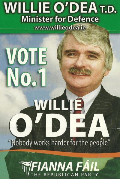 From the 2007 General Election a leaflet from Fianna Fail candidate in Limerick East, Willie O’Dea. He was Minister for Defence at the time.