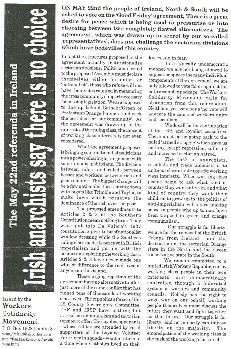 “Irish Anarchists Say There Is No Choice” Good Friday Agreement leaflet from The WSM August 29, 2017