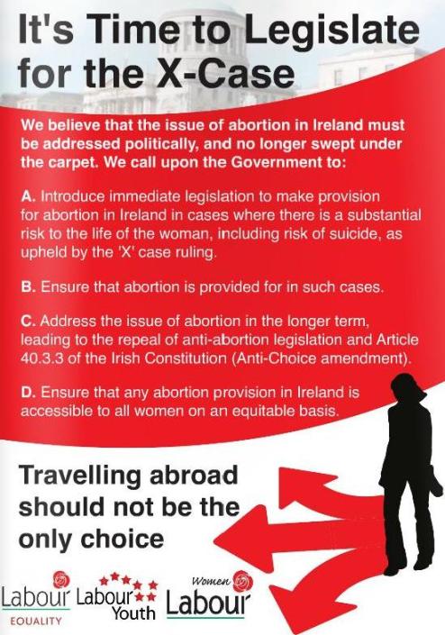 From 2010 a leaflet from the Labour Equality, Labour Youth and Labour Women on the theme “It’s Time to Legislate for the X-Case”