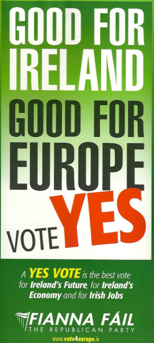 “Good For Ireland, Good For Europe – Vote Yes” Fianna Fail Lisbon One leaflet.. with Link to IBEC website! December 3, 2010